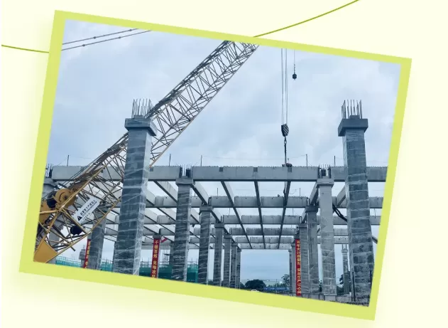 Cần trục dài, được trang bị sức nâng khổng lồ, có thể dễ dàng nâng hàng tấn cột dầm và vận chuyển chính xác đến các máy trạm khác nhau.